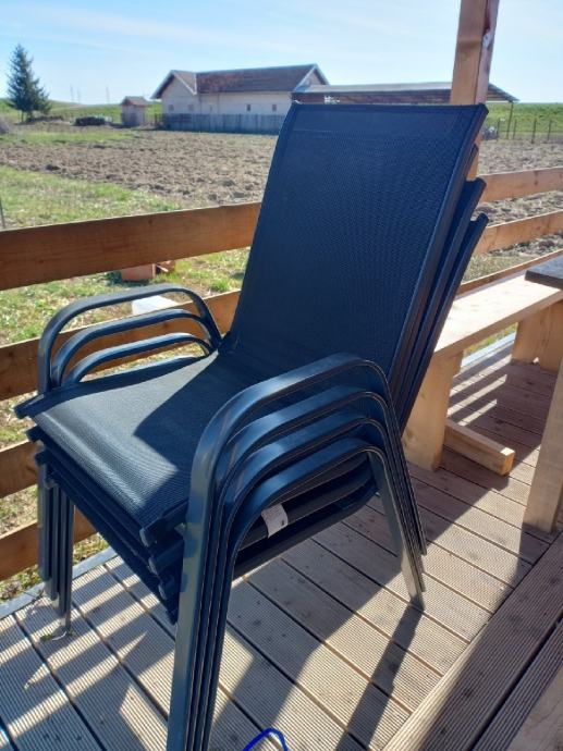 Jedna koristena par puta, ostale nisu ni raspakirane. Kupljeno proslu jesen. Prodajem jer cu koristiti drvene klupe pa mi je ovo visak. Stolice ne stoje vani, samo su izvadjene vani za slikanje. Cijena je za jednu stolicu, moze dostava zg i okolica