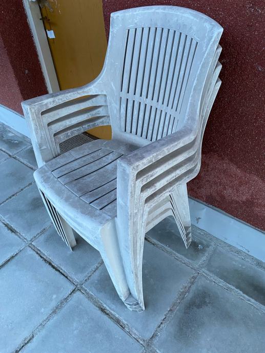 Prodajem plastične stolce, 4 komada, cvrsti su, samo sto su stajali vani pa bi ih trebalo izribati ili miniwashem srediti