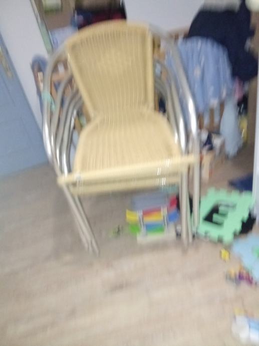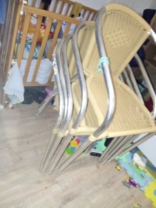 Bež boja, valjda, zuta, 6 komada u stanju od jako očuvane do izraubane, pletenje je plastično, moze kisnut, konstrukcija aluminij, cvrste i lagane, prodajem u kompletu za 90€, dakle 15komad ...