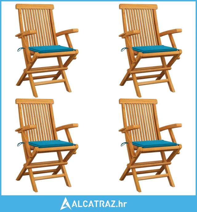 Vrtne stolice s plavim jastucima 4 kom od masivne tikovine - NOVO