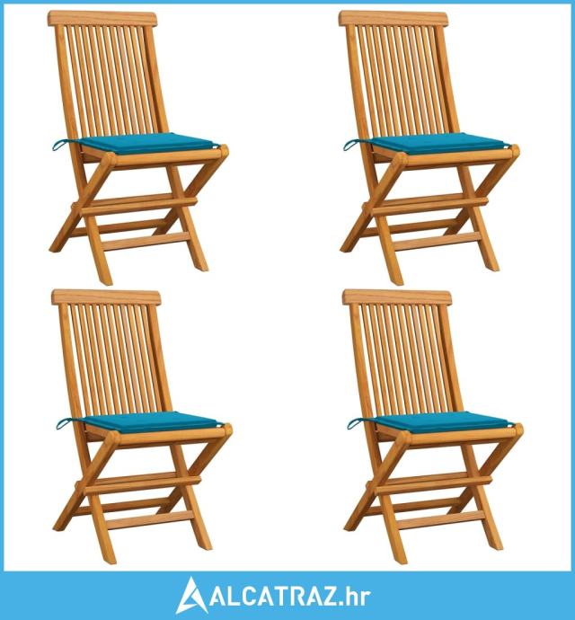 Vrtne stolice s plavim jastucima 4 kom od masivne tikovine - NOVO