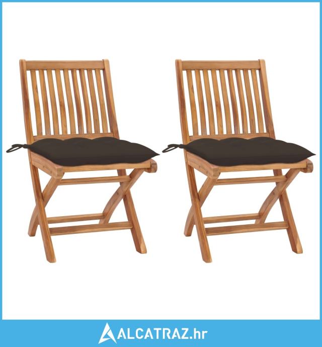 Vrtne stolice sa smeđe-sivim jastucima 2 kom masivna tikovina - NOVO