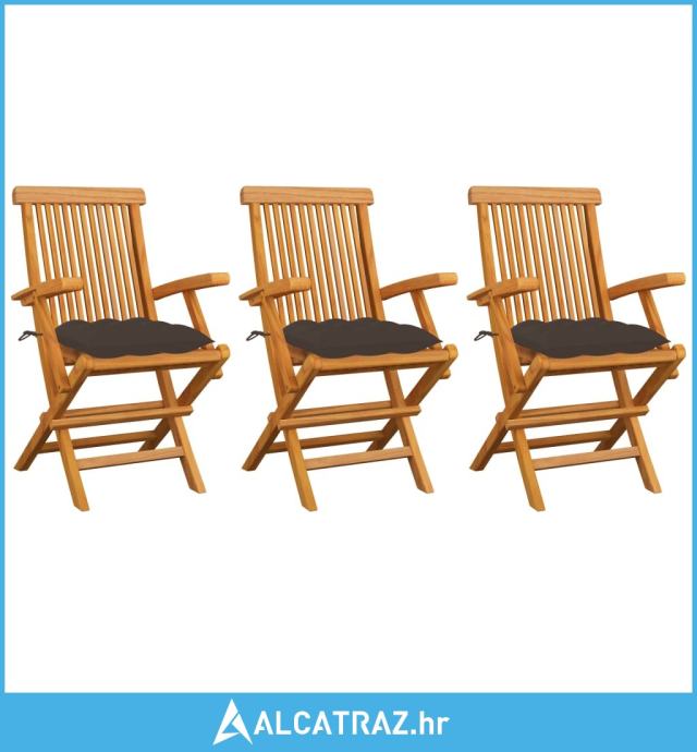 Vrtne stolice sa smeđe-sivim jastucima 3 kom masivna tikovina - NOVO