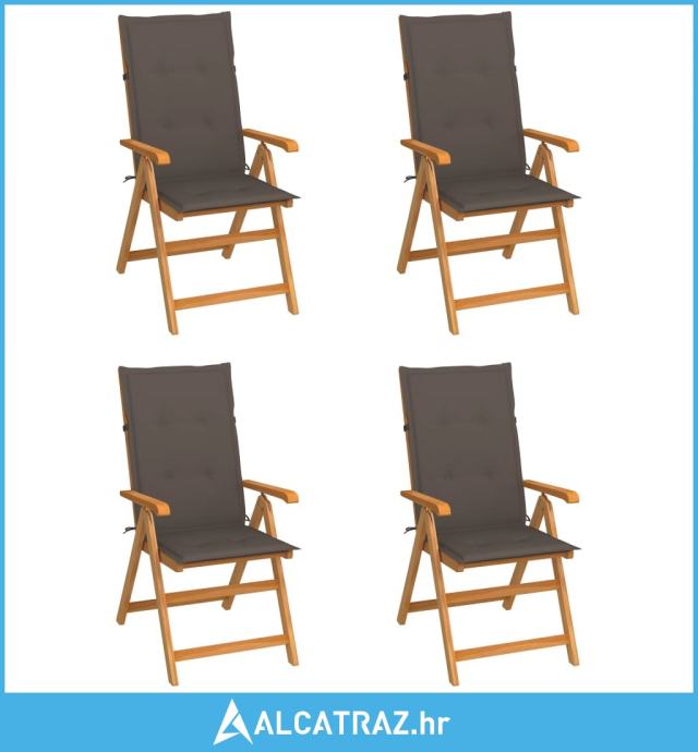 Vrtne stolice sa smeđe-sivim jastucima 4 kom masivna tikovina - NOVO