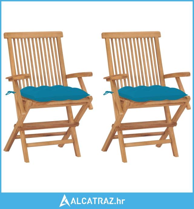 Vrtne stolice sa svjetloplavim jastucima 2 kom masivna tikovina - NOVO