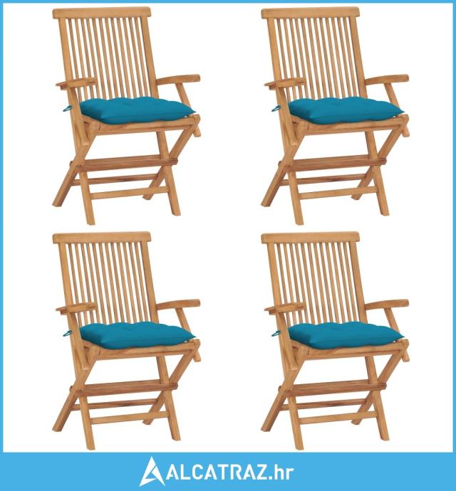 Vrtne stolice sa svjetloplavim jastucima 4 kom masivna tikovina - NOVO