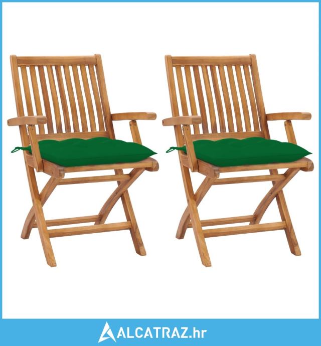 Vrtne stolice sa zelenim jastucima 2 kom od masivne tikovine - NOVO