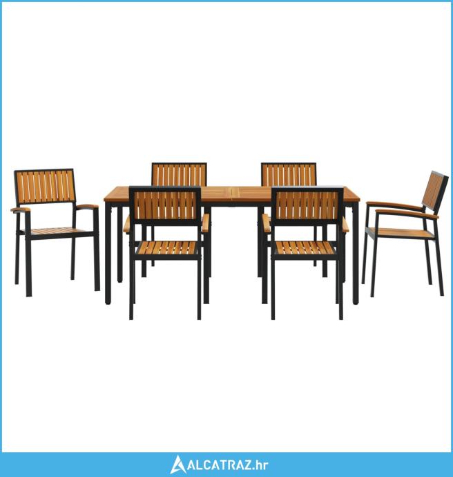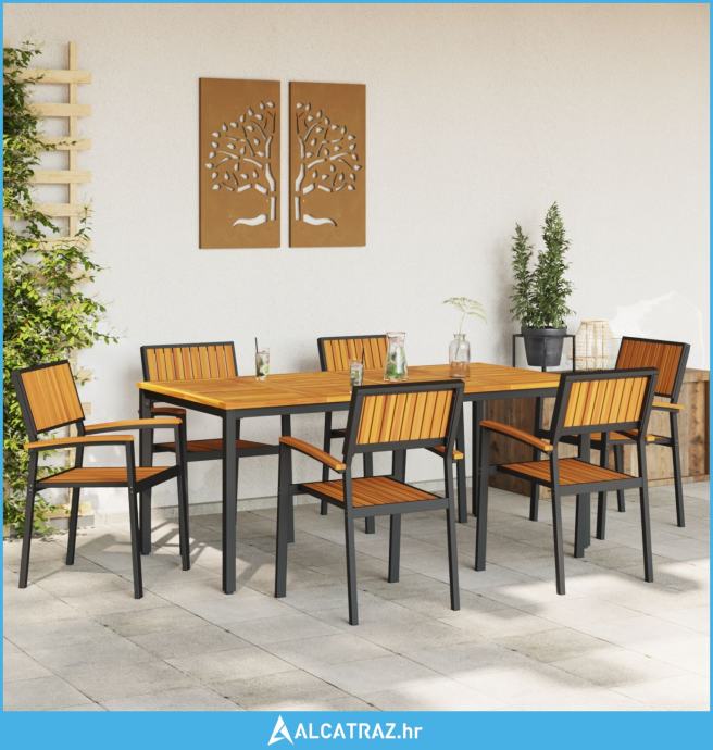 Vrtni blagovaonski set Set od 7 Crna, Prirodno drvo Metal, Drvo - NOVO