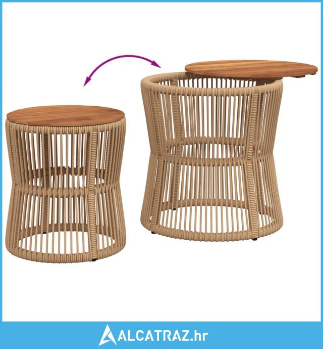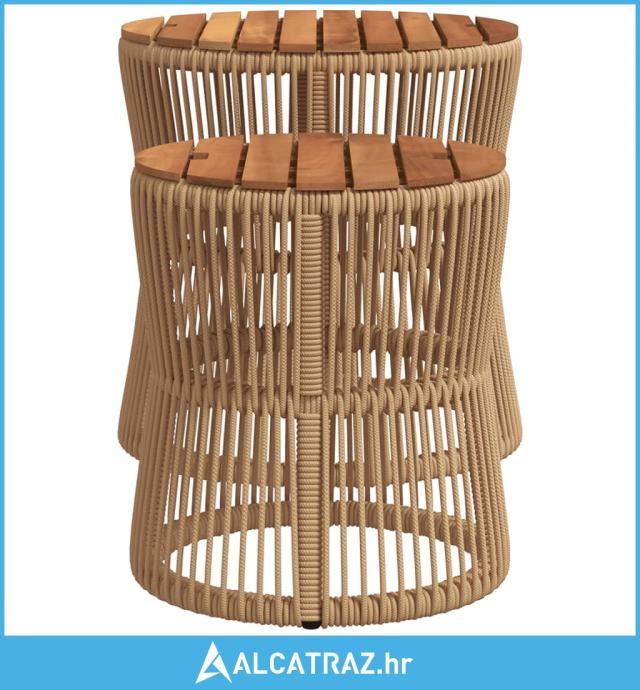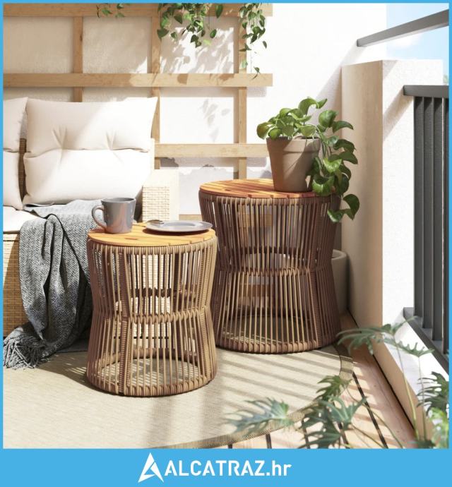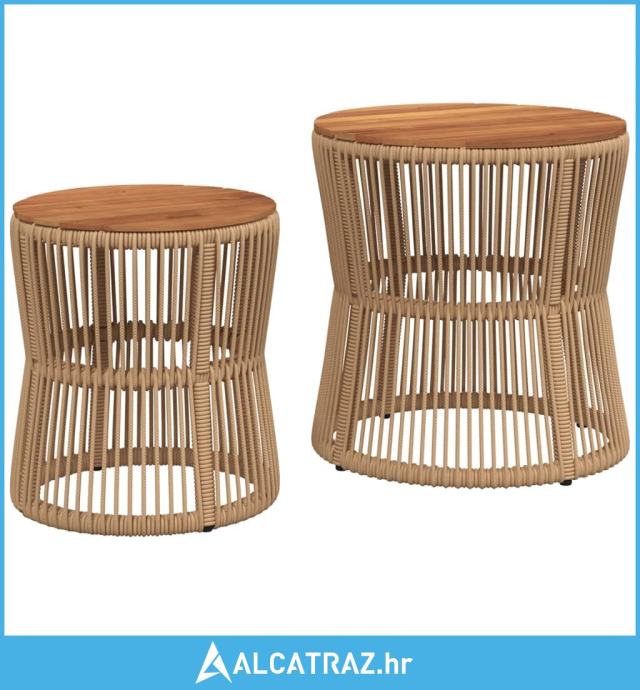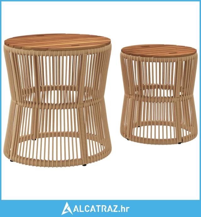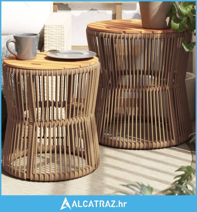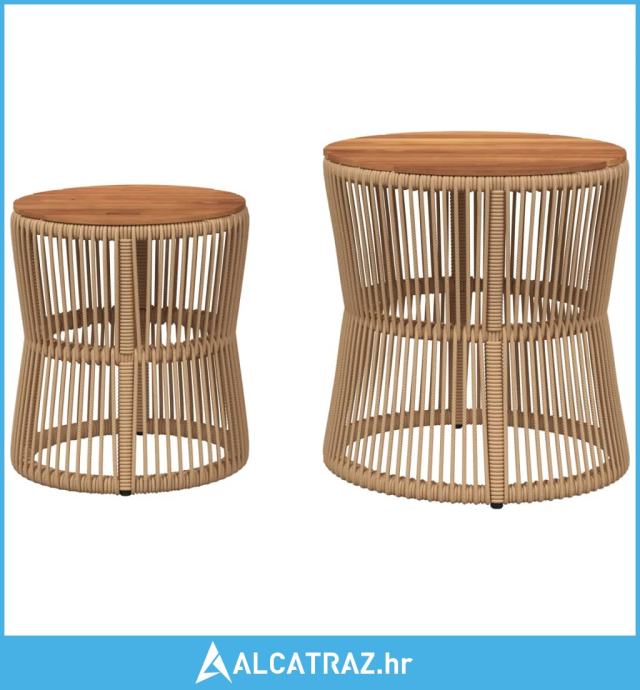 Vrtni bočni stolići s drvenim vrhom 2 kom bež od poliratana - NOVO