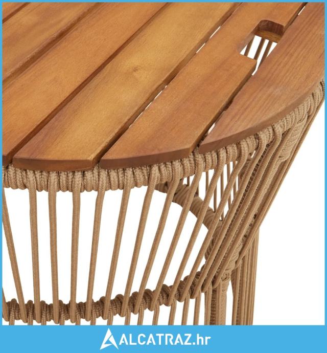 - Drvena stolna ploča: Ploča vanjskog stola napravljena je od čvrstog i izdržljivog bagremovog drva, što olakšava čišćenje vlažnom krpom i dodaje dašak elegancije vašem vanjskom prostoru.