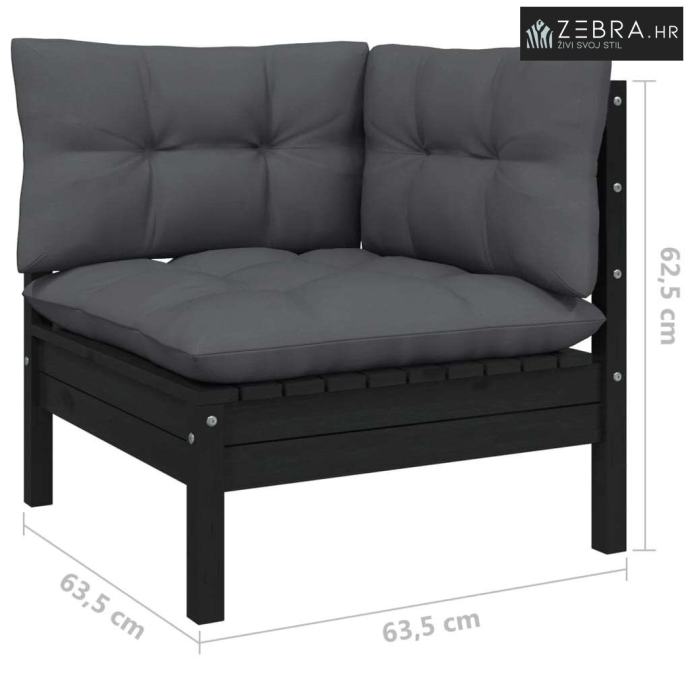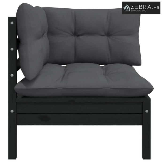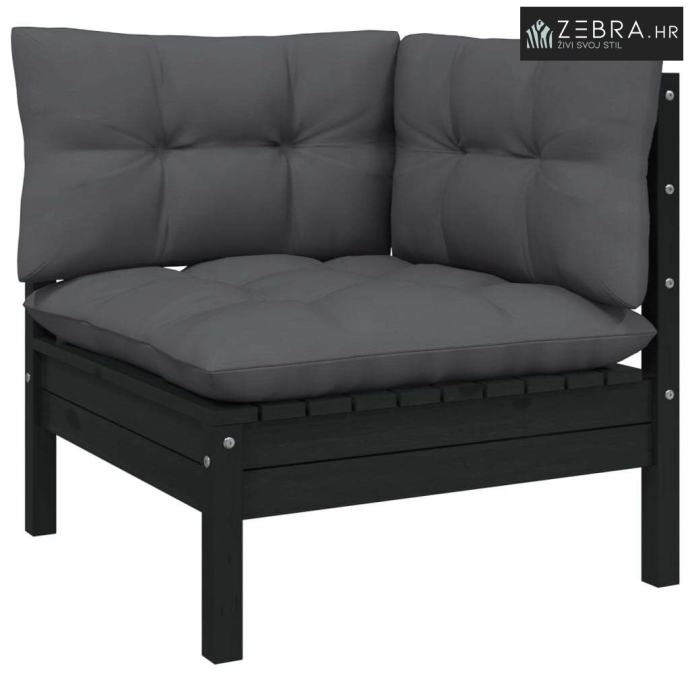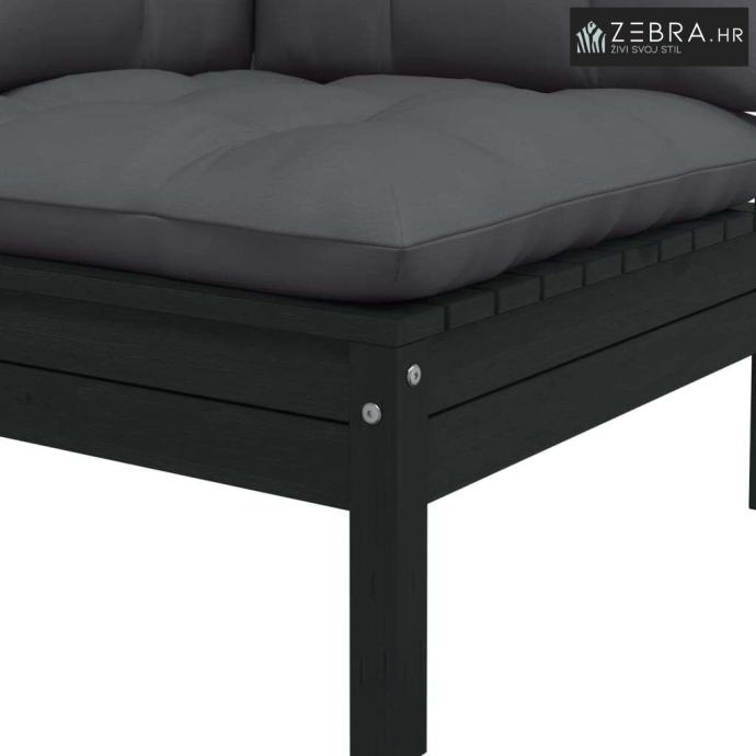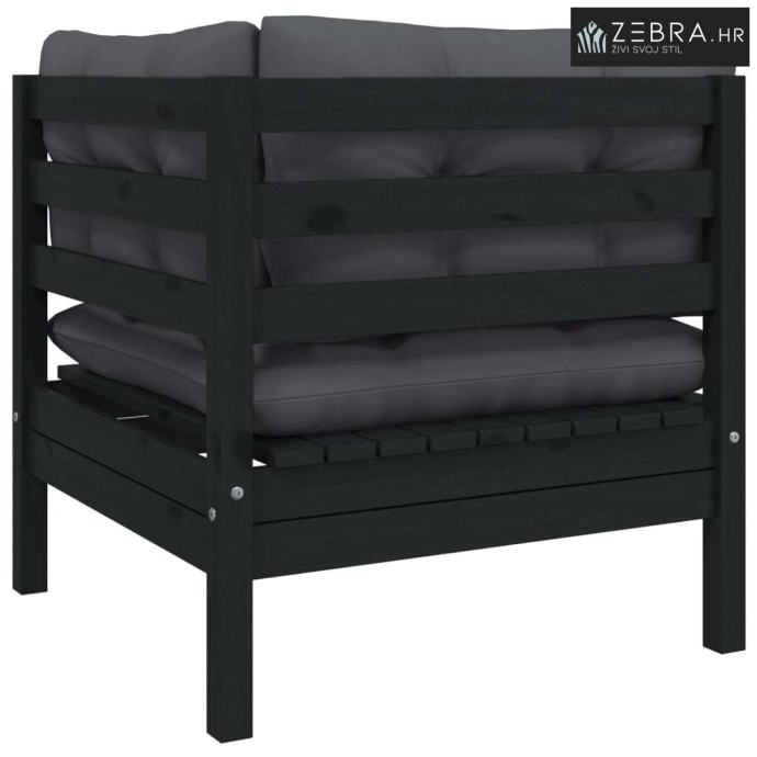 Vrtni dvosjed s jastucima crni od masivne borovine - Crna 1 Kutna sofa