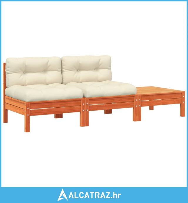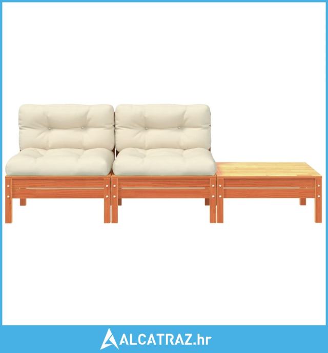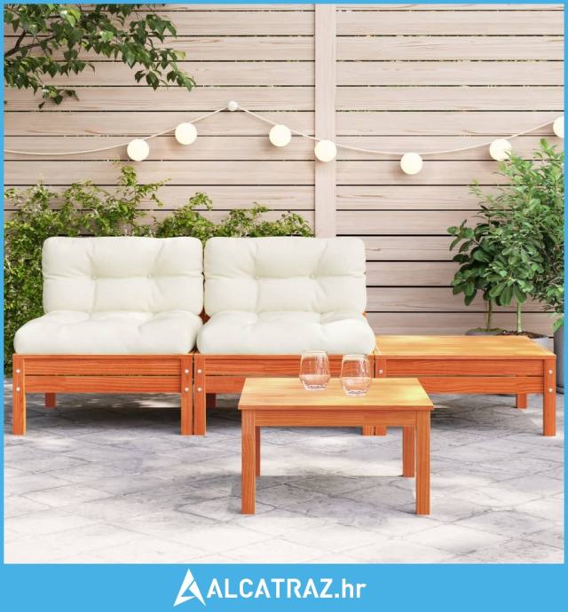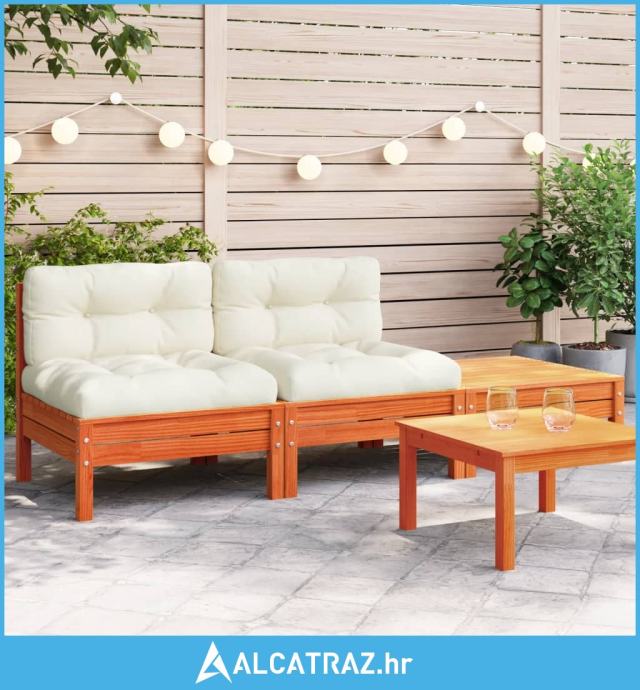 - Masivna borovina: Masivna borovina prekrasan je prirodni materijal. Borovina ima ravne godove, a čvorovi daju materijalu njegov prepoznatljivi, rustični izgled. Napravljena od masivne borovine, ova vanjska sofa izdržljiva je i stabilna.