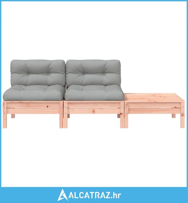 - Masivno drvo duglazije: Masivno drvo duglazije vrlo je izdržljivo drvo koje je savršeno za vanjsku upotrebu. Drvo duglazije također je dovoljno čvrsto da zahtijeva minimalno održavanja, čak i pod utjecajem vremenskih uvjeta. Budući da je napravljena od masivnog drva duglazije, ova vanjska sofa izdržljiva je i stabilna.