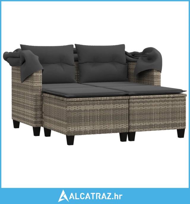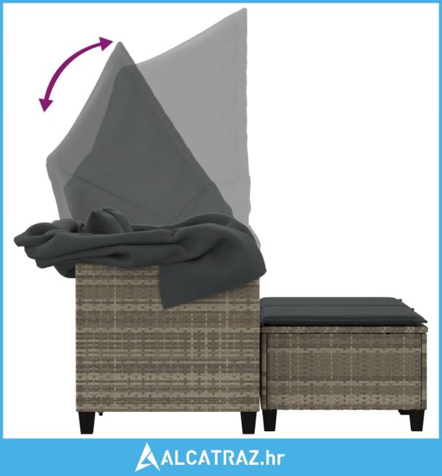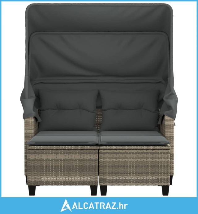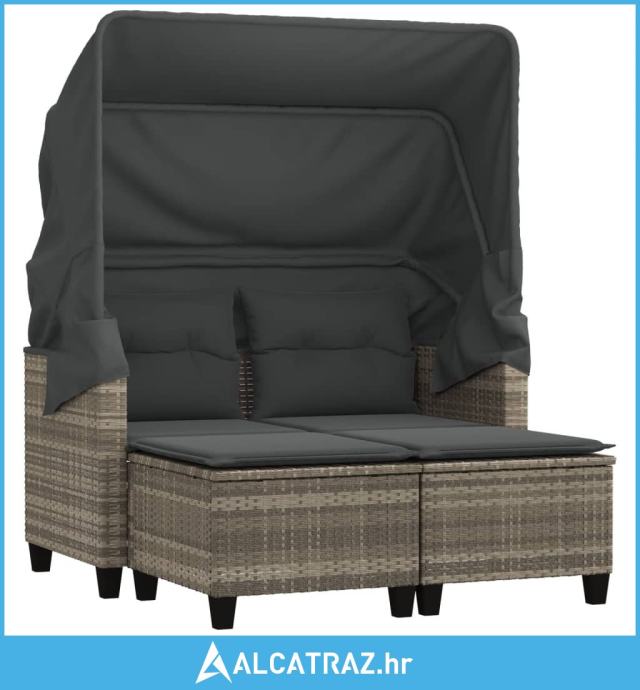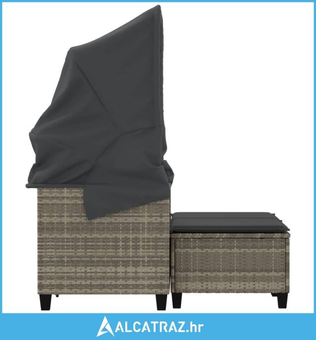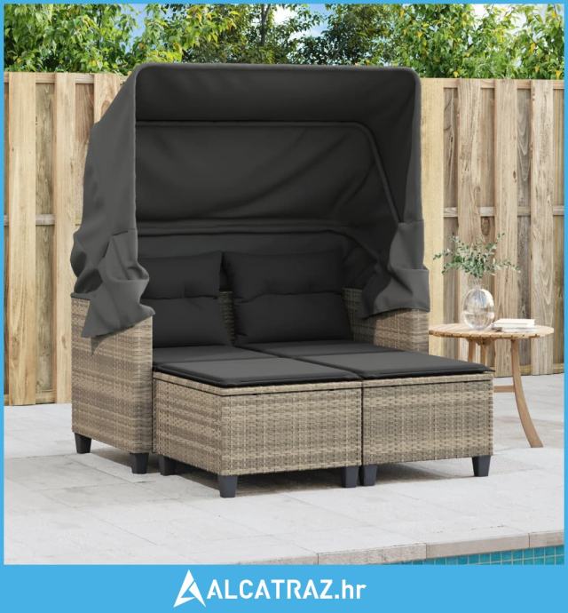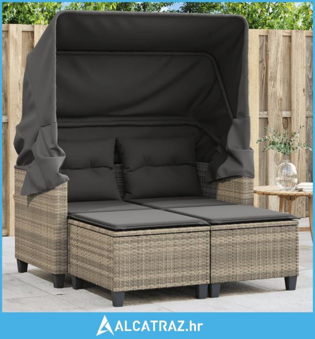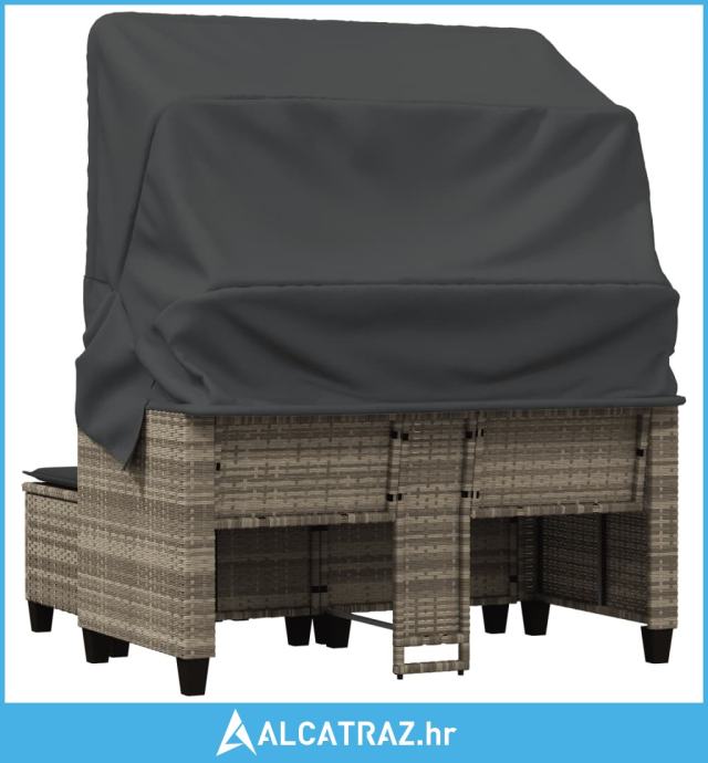 Vrtni dvosjed s krovom i tabureima svjetlosivi od poliratana - NOVO