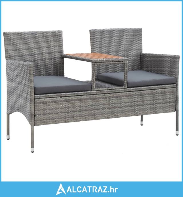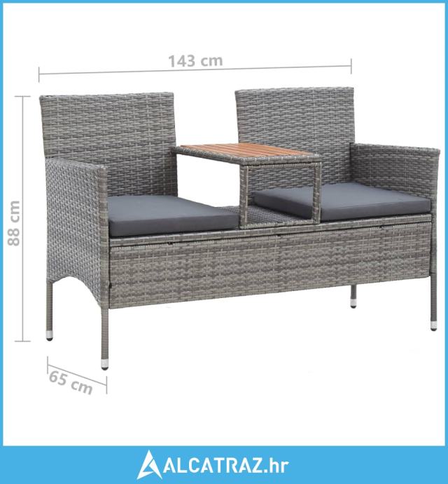 Vrtni dvosjed sa stolićem za kavu 143 cm od poliratana sivi - NOVO