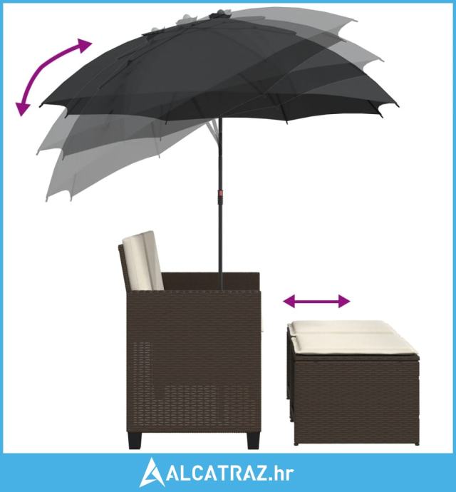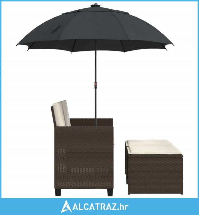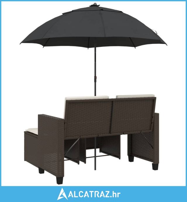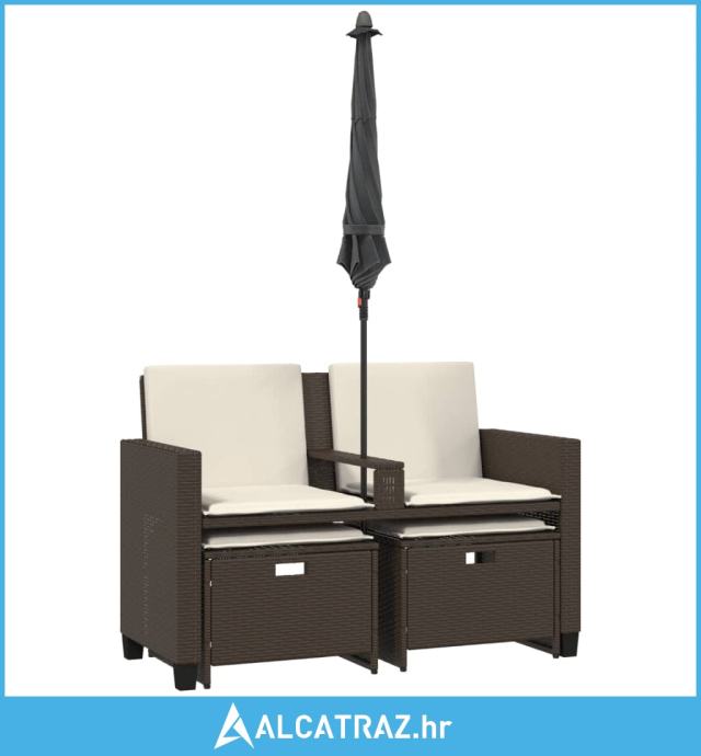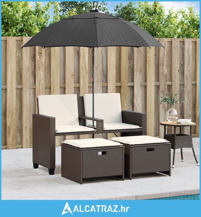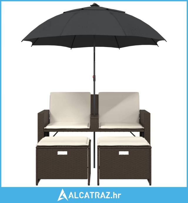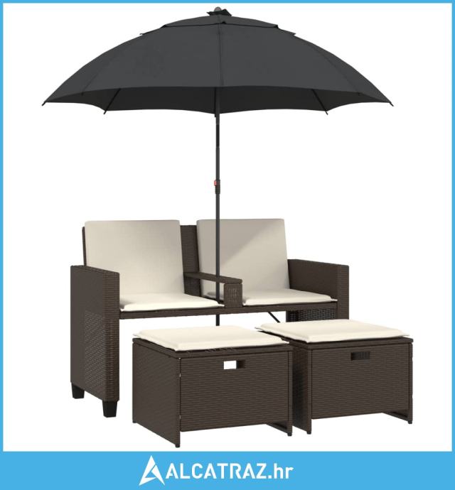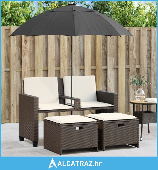 Vrtni dvosjed sa suncobranom i tabureima smeđi od poliratana - NOVO
