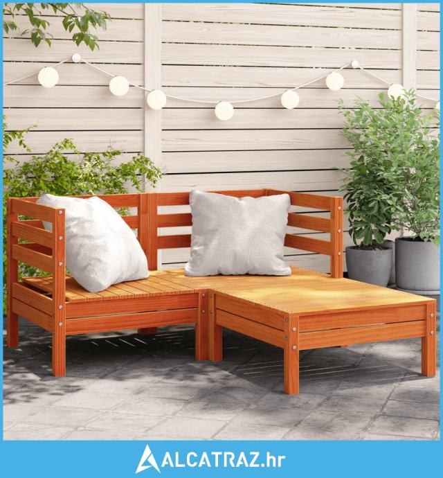 Vrtni dvosjed s tabureom voštano smeđi od masivne borovine - NOVO