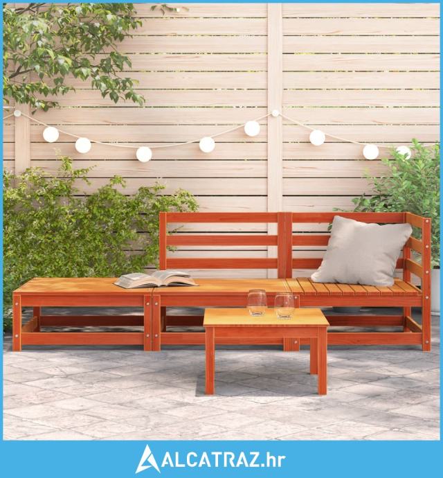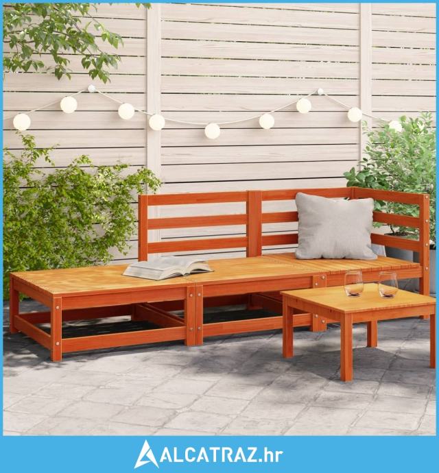 Vrtni dvosjed s tabureom voštano smeđi od masivne borovine - NOVO