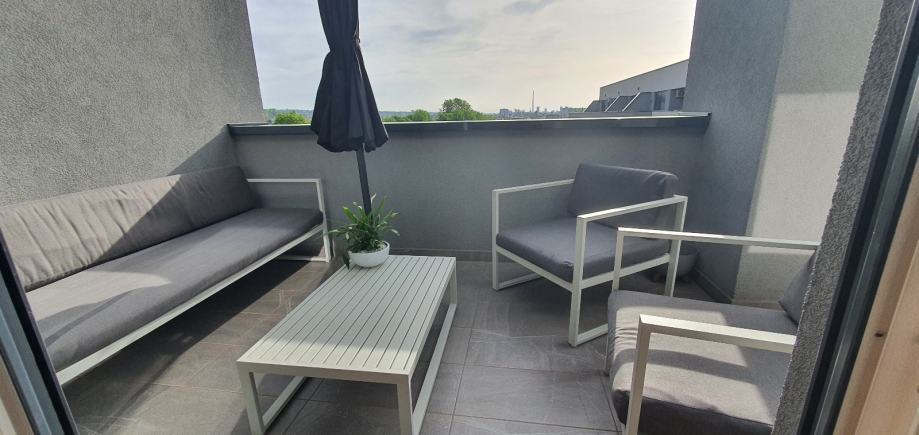 Dvije fotelje, trosjed (210cm) i stolić. Bijela boja. 2021. godine kupljeno. Metal je pa je stanje jako dobro. Ima par tockica koje su smeđkaste boje i to je to. Spuzvu trosjeda treba promijeniti i kemijski ocistiti navlaku. Ostale u ok stanju. Prodaja moze i bez njih.