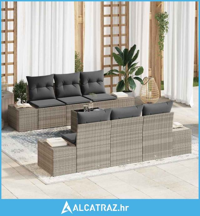 Ovaj vrtni kauč set donosi stil i udobnost na otvorenom. Savršen je za opuštena druženja ili zabavu s prijateljima i obitelji. Sa modernim dizajnom u svjetlosivoj i tamnosivoj boji, savršeno se uklapa u svaki patio, balkon ili vrt, podižući vanjsku vibru dok nudi udobno sjedenje za do šest osoba, uz udobne jastučiće.