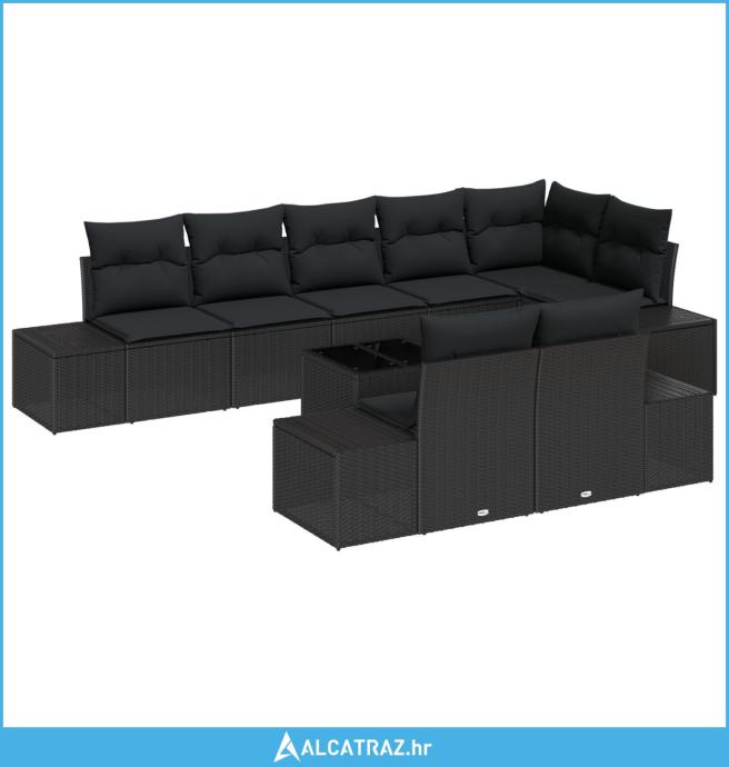 Vrtni kauč set Set od 9 Crna Poli ratan s poliester jastučićima - NOVO