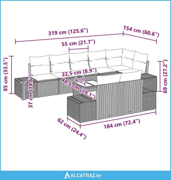 Ovaj vanjski sekcijski kauč set kombinira stil i funkcionalnost, čineći ga idealnim izborom za svaki vrt ili vanjski prostor. Izrađen je s čvrstim okvirom od poli ratana i udobnim jastučićima, pružajući ti elegantno mjesto za opuštanje s knjigom ili organiziranje vanjskih zabava.