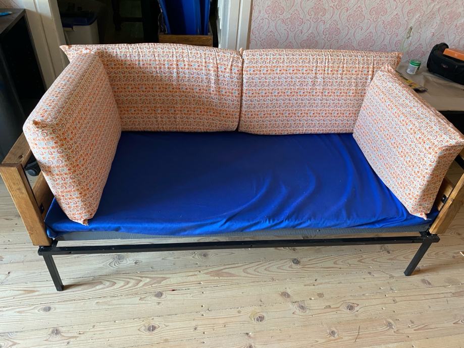 Prodajem vrtni krevet, dvosjed izrađen od željezne konstrukcije i punog drveta. Krevet je zaštićen lakom i bojom. Krevet ima odvojivu podnicu. Uz krevet dolazi presvučena spužva za sjediti kao i četiri jastučića za maksimalnu udobnost. Masivan i kvalitetan. Uz krevet ide i hoklica izrađena od punog drveta, također zaštićena lakom. Cijena 600 kn.