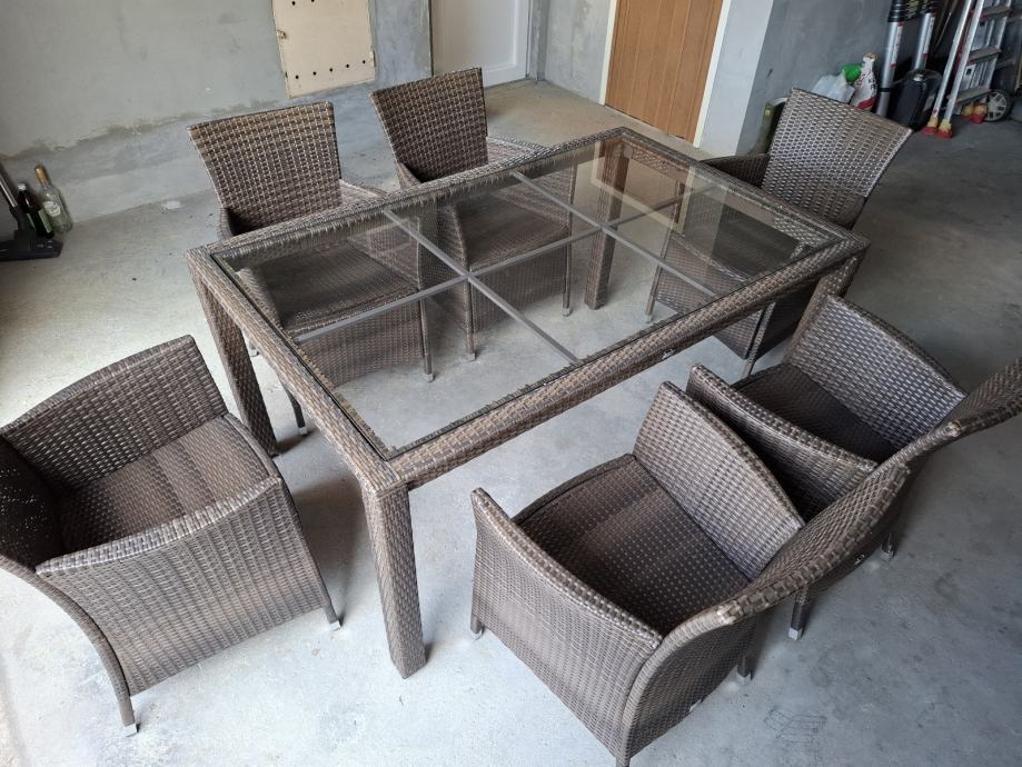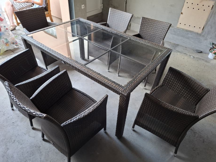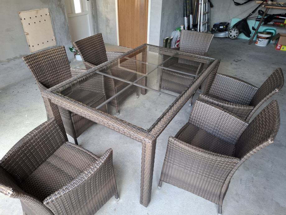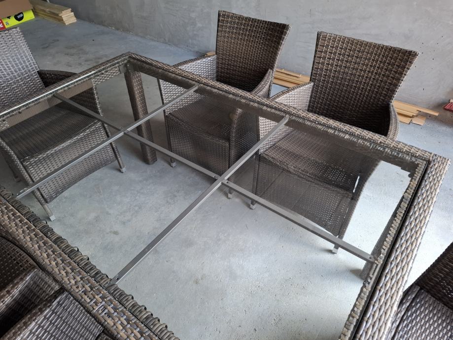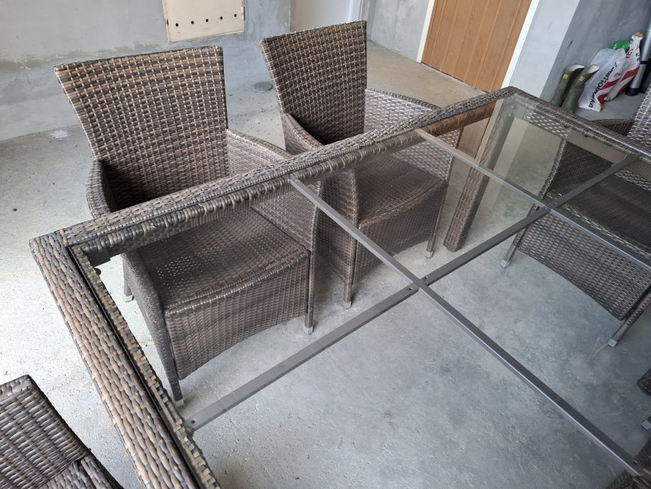 Na prodaju dobro ocuvan vrtni namjestaj od ratana, sa minimalnim tragovima koristenj. Jedna stolica ( gornji dio naslonjaca ) malo popucao, ali sve stolice se mogu normalno koristiti.