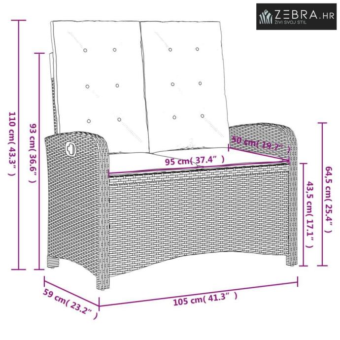 Dimenzije kod sjedenja: 105 x 59 x 93 cm (Š x D x V)