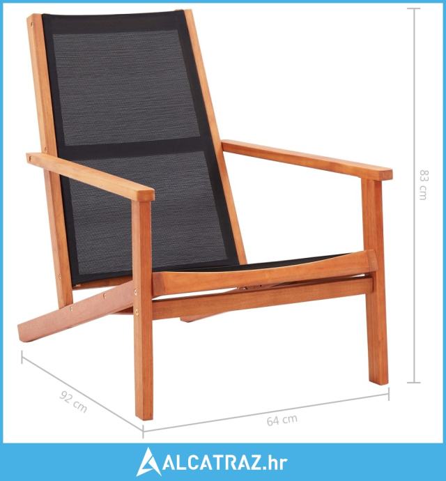 Vrtni naslonjač od masivnog drva eukaliptusa i tekstilena crni - NOVO