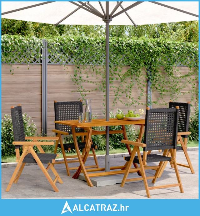 Vrtni naslonjači 4 kom crni od poliratana i masivnog drva - NOVO