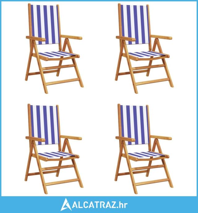 Vrtni naslonjači 4 kom krem plavo-bijeli od tkanine i drva - NOVO