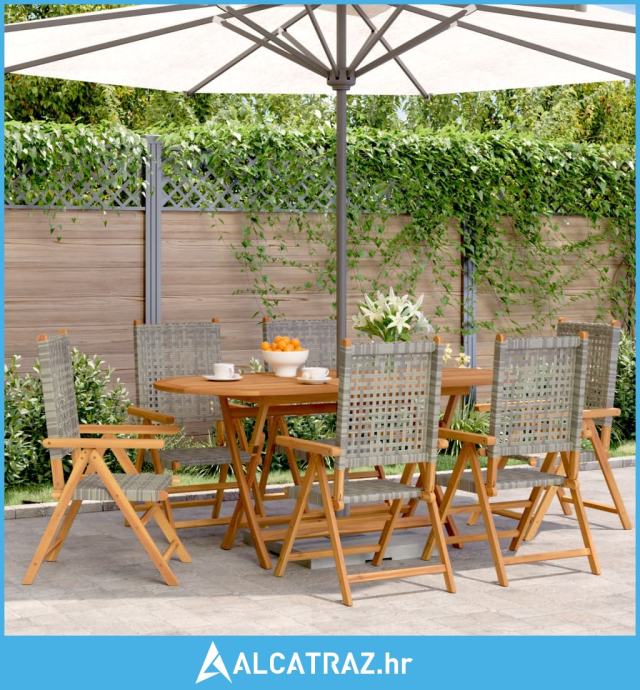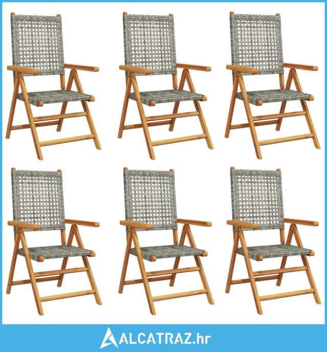 Vrtni naslonjači 6 kom sivi od poliratana i masivnog drva - NOVO