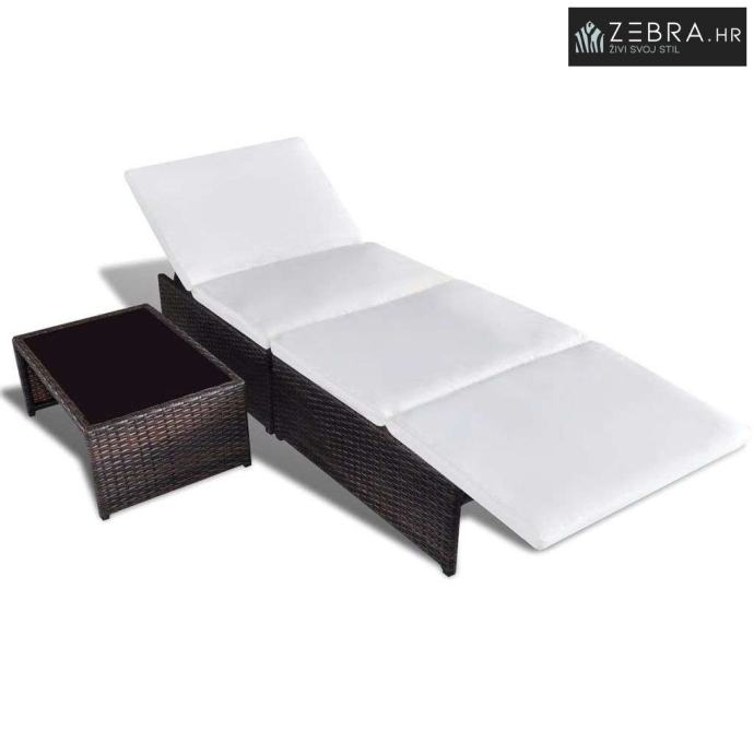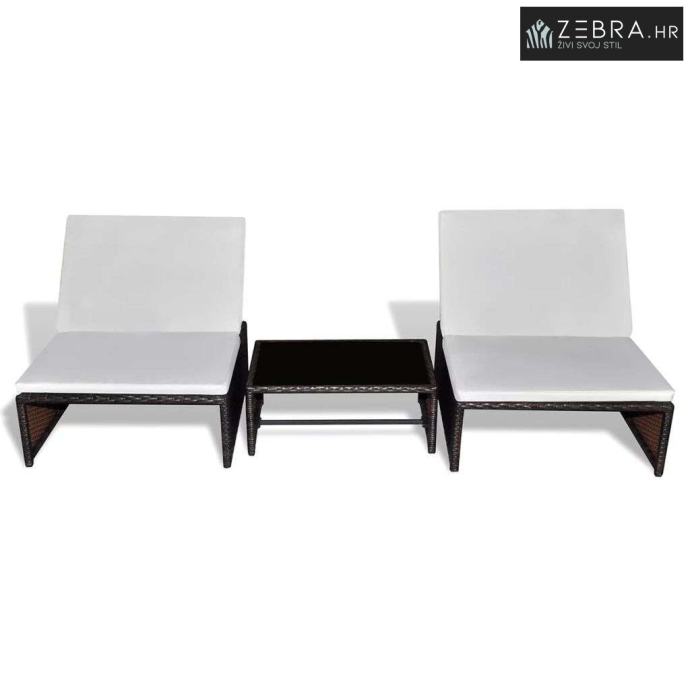 Vrtni naslonjači sa stolićem 2 kom smeđi od poliratana - Smeđa i bijel