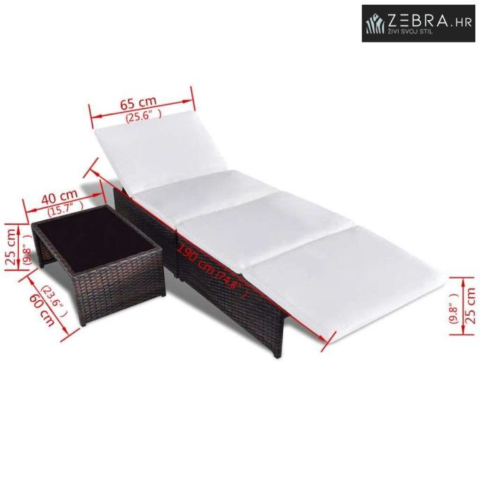 Veličina ležaja za sunčanje: 190 x 65 cm (D x Š) - kad su 2 stolice potpuno produžene i kombinirane