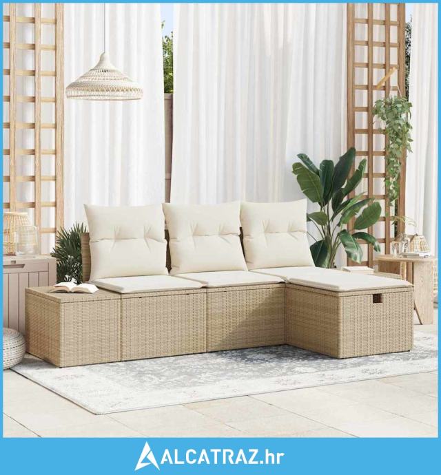 u003culu003eu003cliu003eIzdržljiva konstrukcija: Izrađena od čvrstog ratana koji je jak i dugotrajan, odolijeva vremenskim uvjetima, a izgleda super. Savršeno za vanjske zabave, ostaje lijep čak i u kiši ili pod suncem.u003c/liu003eu003cliu003ePristup udobnosti: Svako sjedalo ima mekane pjenaste jastučiće prekrivene poliesterom za dodatnu udobnost. Idealno za ljetne poslijepodne vani.u003c/liu003eu003cliu003eUgrađeno skladište: Set dolazi s praktičnim skladištem. Svaki komad ima vodootpornu torbu za jastučiće i sitnice, što ga čini korisnim dodatkom tvojoj terasi.u003c/liu003eu003cliu003eProstrani kapacitet sjedenja: Udobno smješta do četiri osobe, što ga čini savršenim za obiteljska okupljanja ili druženja s prijateljima.u003c/liu003eu003cliu003eJednostavno održavanje: Uklonjive navlake za jastučiće imaju patentne zatvarače za jednostavno čišćenje, održavajući tvoj kauč set svježim s minimalnim trudom.u003c/liu003eu003c/ulu003e