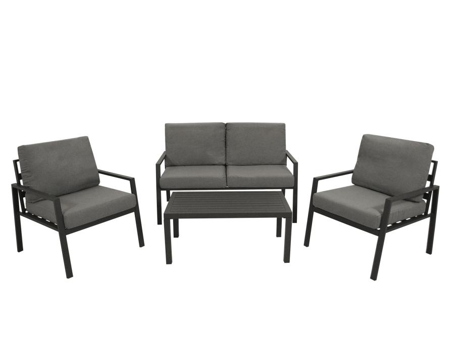 Uživajte u opuštajućim satima na otvorenom uz moderni Vancouver lounge set. Ovaj moderan 4-dijelni set spaja elegantan dizajn s visokom funkcionalnošću i pretvara vaš vrt, balkon ili terasu u mjesto dobrog raspoloženja.
