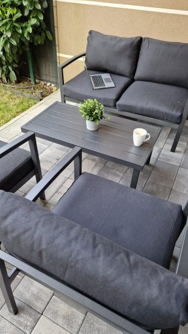 U setu dolazi dvosjed, 2 fotelje i stolić, svi pripadajući jastuci.