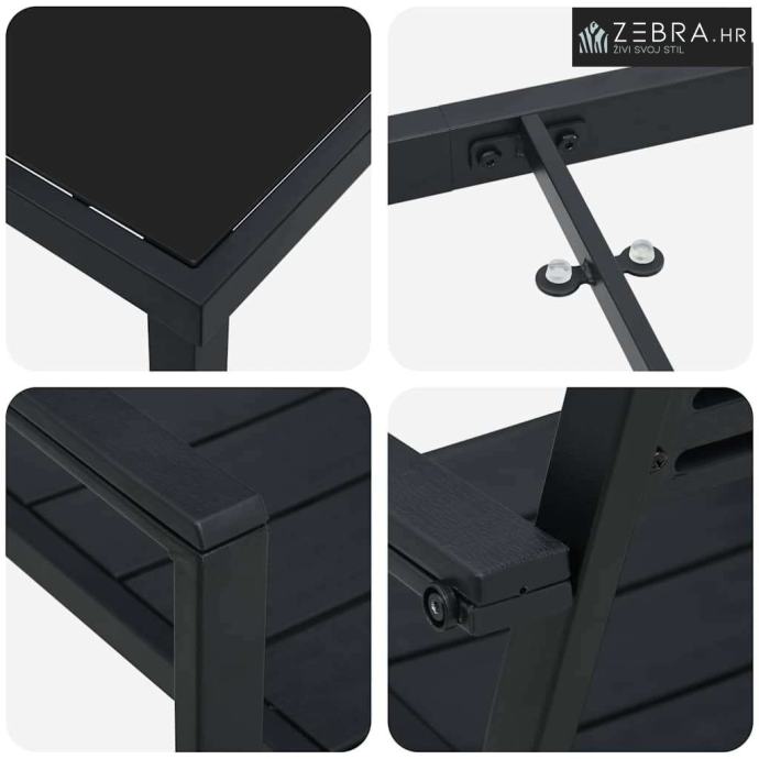 Moderne dizajnerske značajke: Ovaj set donosi moderne linije s praktičnošću, idealan za suvremena vanjska okruženja. Crna boja se savršeno uklapa u razne stilove vrta, unoseći dašak elegancije.