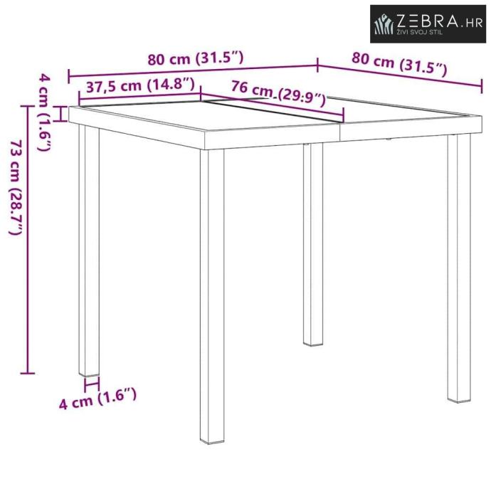 1 x stol: 80 x 80 x 73 cm (DxŠxV)