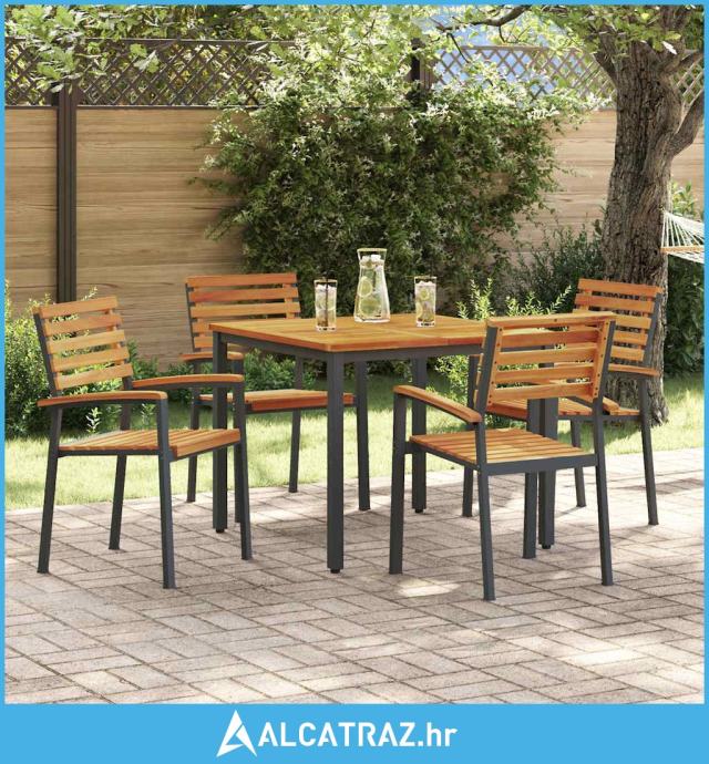 - Materijali: Vrtna garnitura sastoji se od kombinacije masivnog bagremovog drveta i čelika. Bagremovo drvo poznato je po svojoj čvrstoći i lijepoj strukturi, donoseći prirodnu eleganciju vašem vrtu. Čelična konstrukcija osigurava jačinu i otpornost.