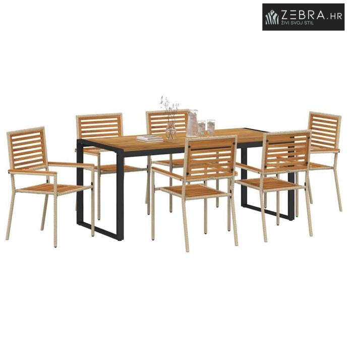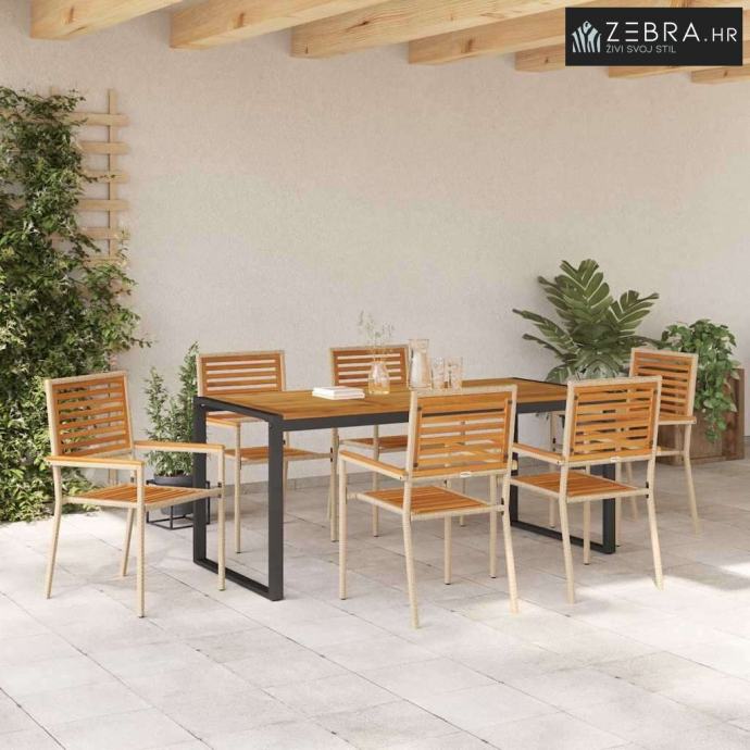 Premijum materijali: Ovaj set za objedovanje ima kombinaciju poliratana i masivnog bagremovog drveta, dodajući prirodni izgled svakom vanjskom prostoru. Poliratan je zabavan zato što je otporan na sve vremenske uvjete, pomaže mu da traje čak i kada pada kiša ili sija sunce. Bagremovo drvo dodaje dojam topline i bogatstva, poboljšavajući ukupan izgled.