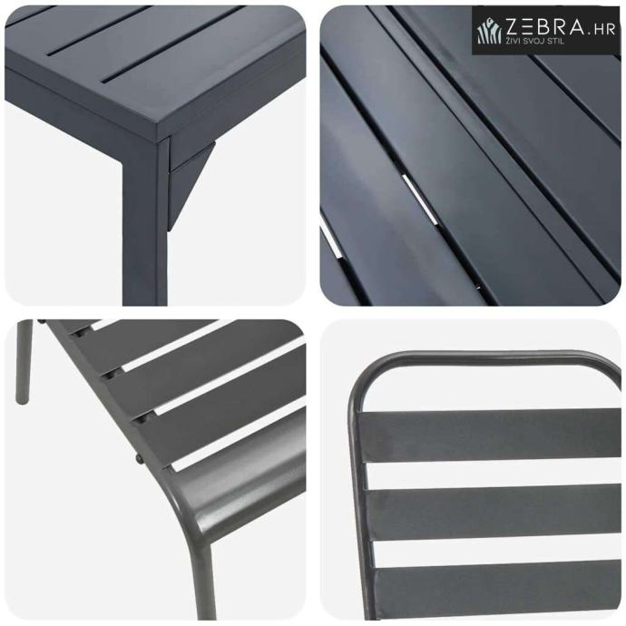 Značajke / Funkcija / Dizajn: Njegov suvremeni dizajn, s naglaskom na jednostavnost i funkcionalnost, daje dašak sofisticiranosti svakom vanjskom prostoru. Produžni stol i lako podešavanje povećavaju svestranost seta, dok antracitna nijansa dodaje eleganciju.