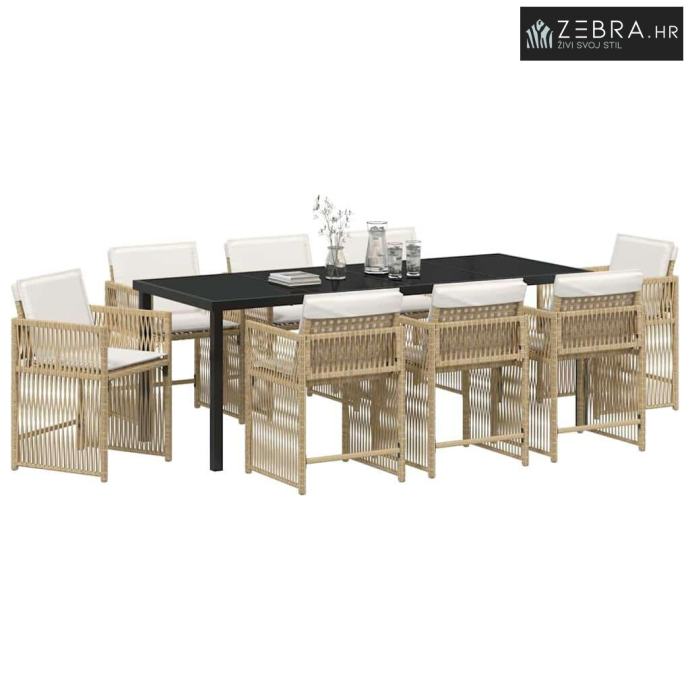 Ovaj vrtni blagovaonski set spaja moderni dizajn s izdržljivom funkcionalnošću. Tako elegantne linije i minimalističke značajke daju mu privlačan izgled, odličan za vrtne ili terasne prostore. Idealno je za sve koji cijene i stil i udobnost tijekom jela na otvorenom. Konstrukcija od poliratana dodaje suvremen dodir, savršeno se uklapa u svaki vanjski prostor.
