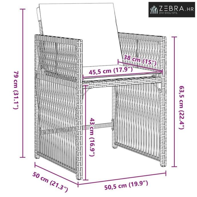 4 x vrtna stolica: 50.5 x 50 x 79 cm (DxŠxV)