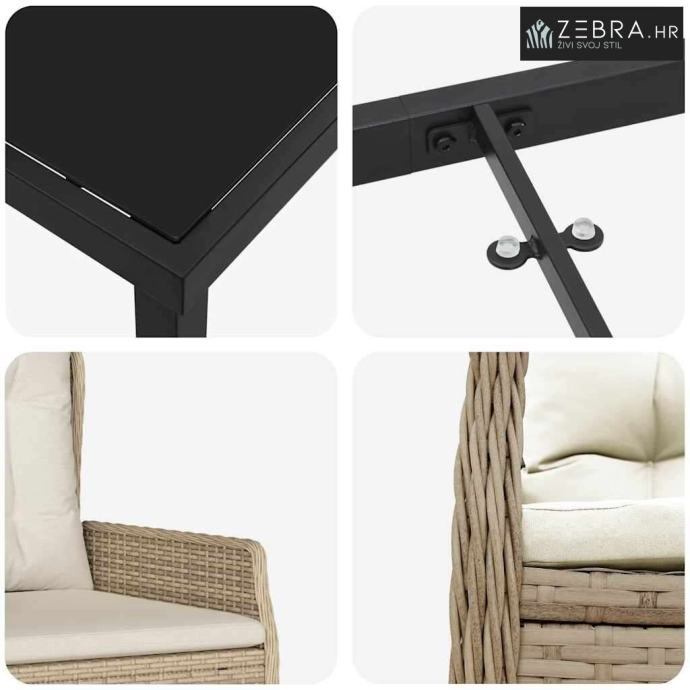 Izdržljiva struktura: Set je izrađen od poliratana otpornog na vremenske uvjete, osiguravajući dugovječnost. Čvrsta konstrukcija jamči pouzdanost u vašem vanjskom prostoru, pružajući udobnost i stabilnost.