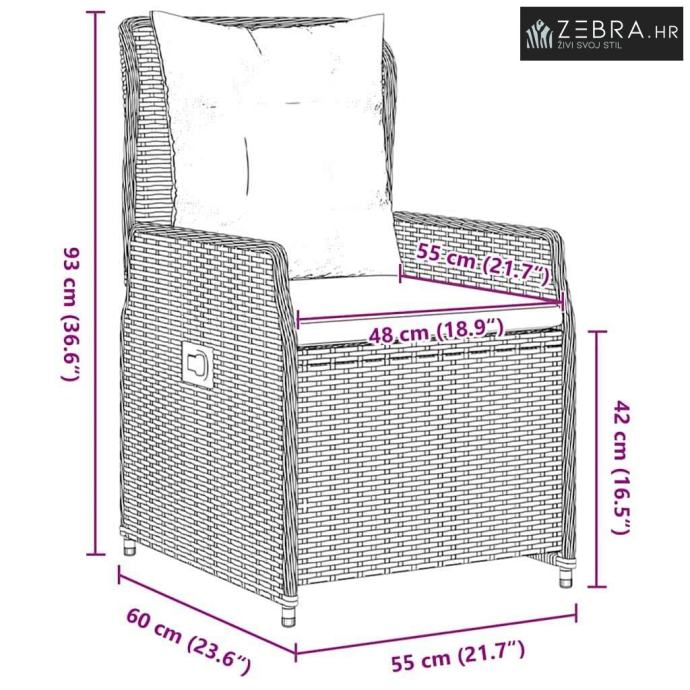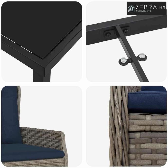 Materijal Poliratan: Ovaj materijal je otporan na vremenske uvjete, pa može izdržati ljetno sunce i povremenu kišu, a da i dalje izgleda dobro. Izabran je tako da zadrži svoj chic izgled i ostane čvrst za vanjsku upotrebu.