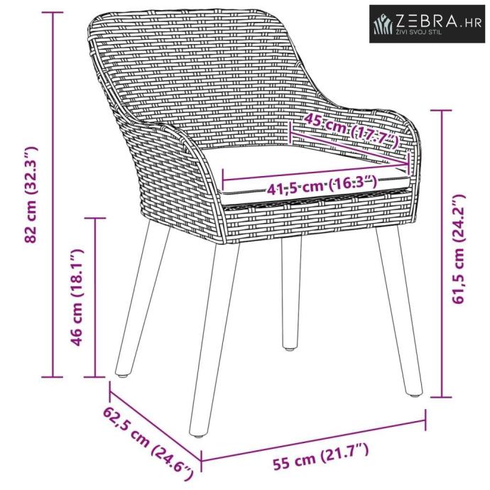 6 x Vrtna stolica: 62,5 x 55 x 82 cm (DxŠxV)