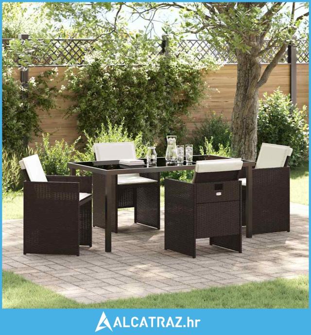 Vrtni set za objedovanje od 5 dijelova s jastučićima smeđi poli ratan