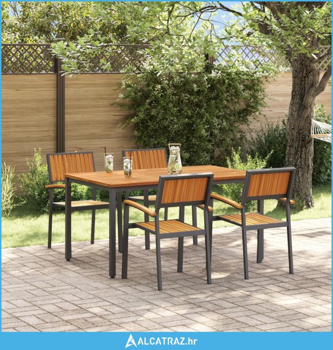 - Izdržljiva Građa: Napravljen od čvrstog metalnog okvira i prirodnog drva akacije, ovaj set je izdržljiv i otporan na vremenske uvjete. UV-otporni materijali čuvaju ga lijepim kroz vrijeme.